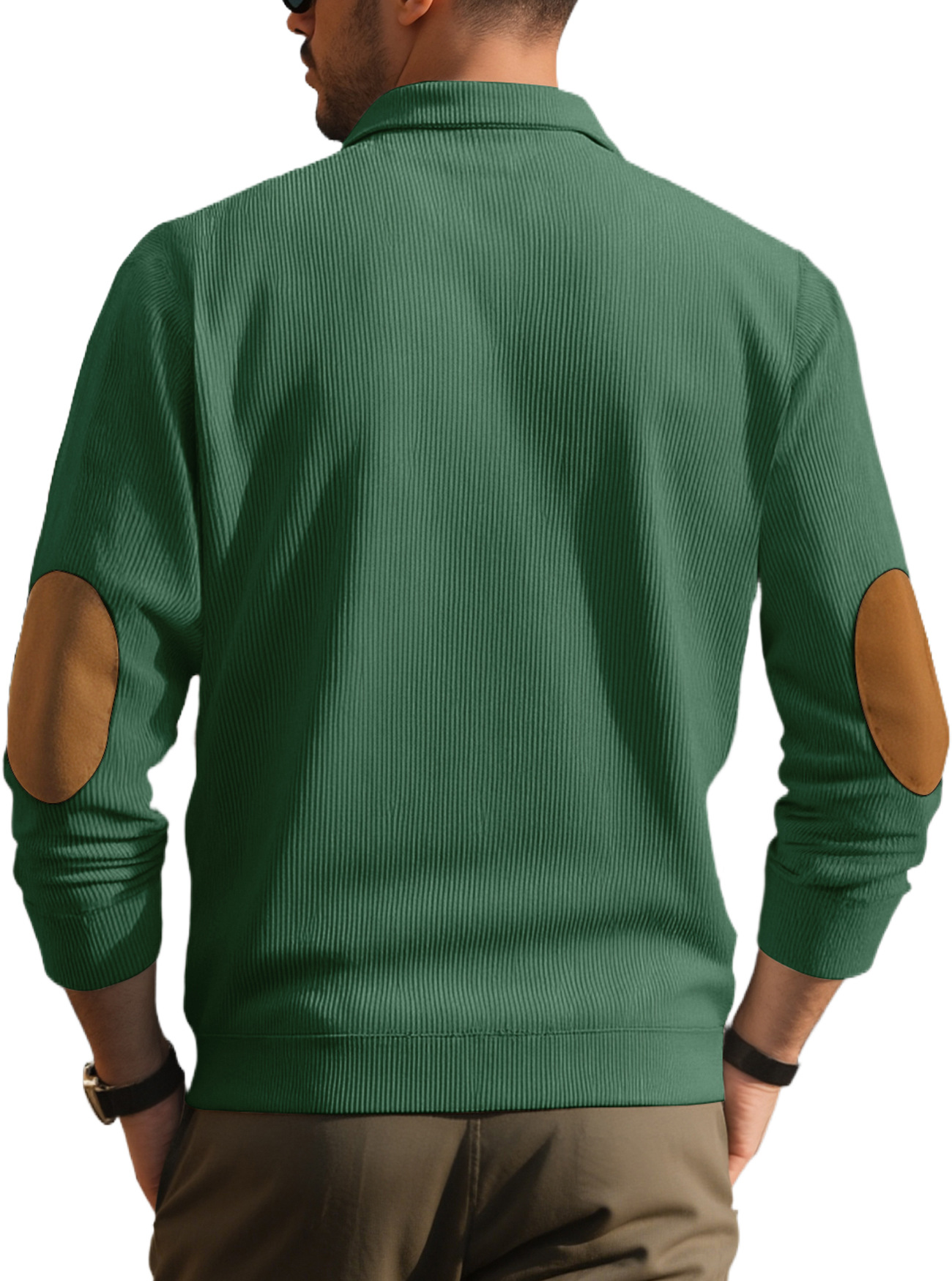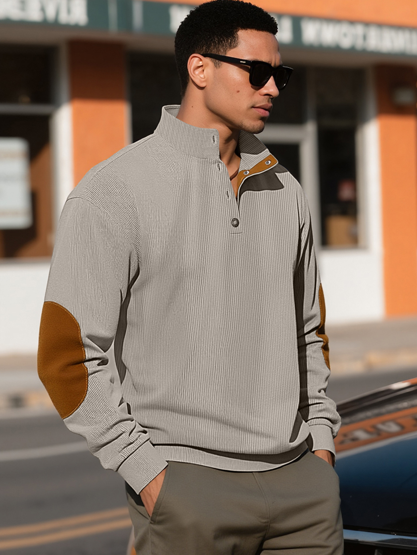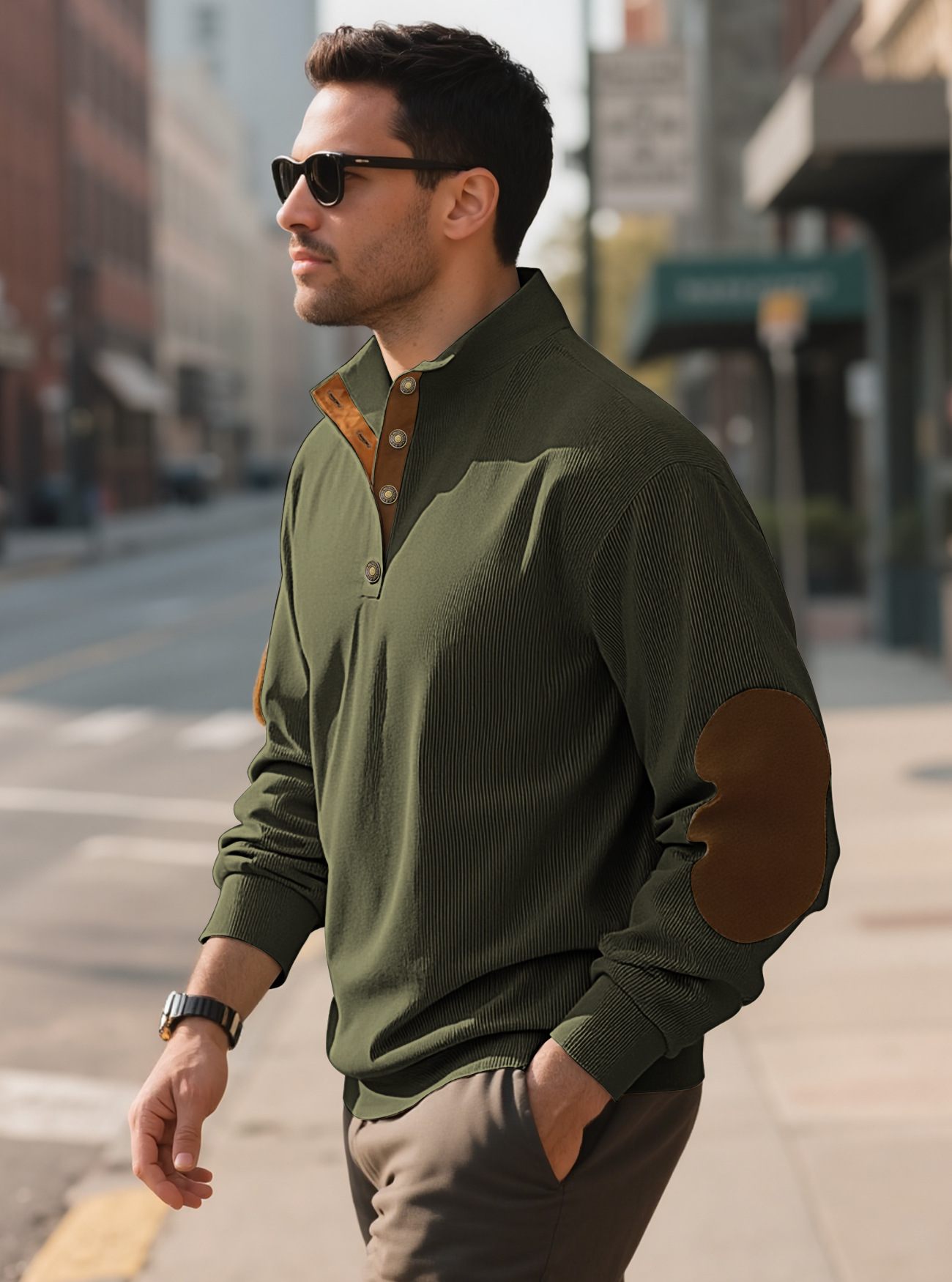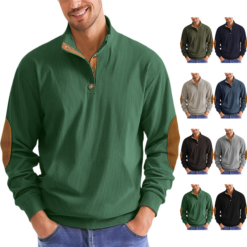 Men'S Corduroy Sweatshirt - Oversized Long Sleeve Pullover with Stand Collar, Green & Brown Striped Casual Sweater, All-Season Comfortable Loose Fit for Outdoor & Casual Attire, Plus Size Available, Easy Care (Ideal for Bowling & Casual Outfits)