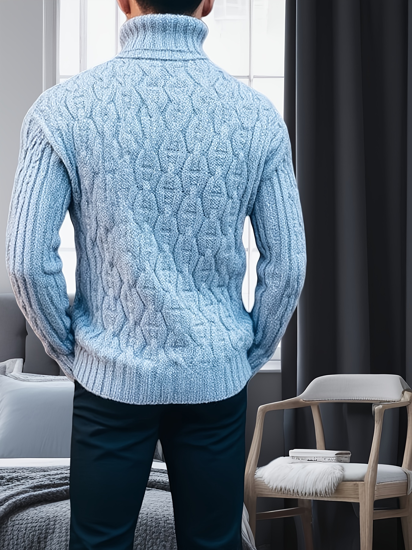 Men's Plus Size Winter Warm Sweater - Oversized Loose Fit High Collar Pullover, Solid Color Casual Winterwear Suitable for Cold Weather, Hand Washable Thick Sweaters, PLUS SIZE