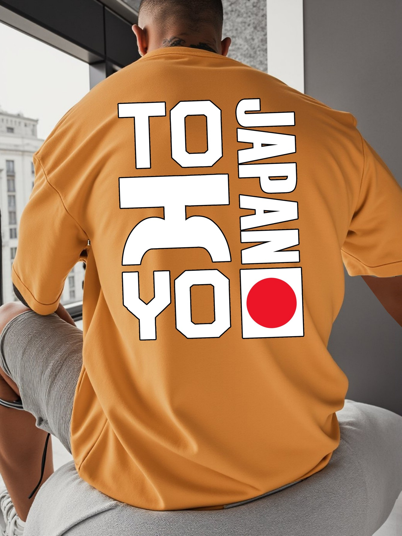 0302 XH JAPAN TOKYO Men's Casual Short Sleeve T-Shirt - Oversized Relaxed Fit, Bold TOKYO Graphic Print with Japanese Flag Design, Lightweight Summer Round Neck Top for Casual Attire, Comfortable Fabric, PLUS SIZE