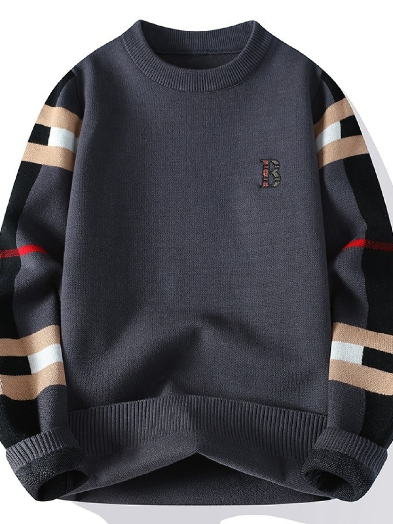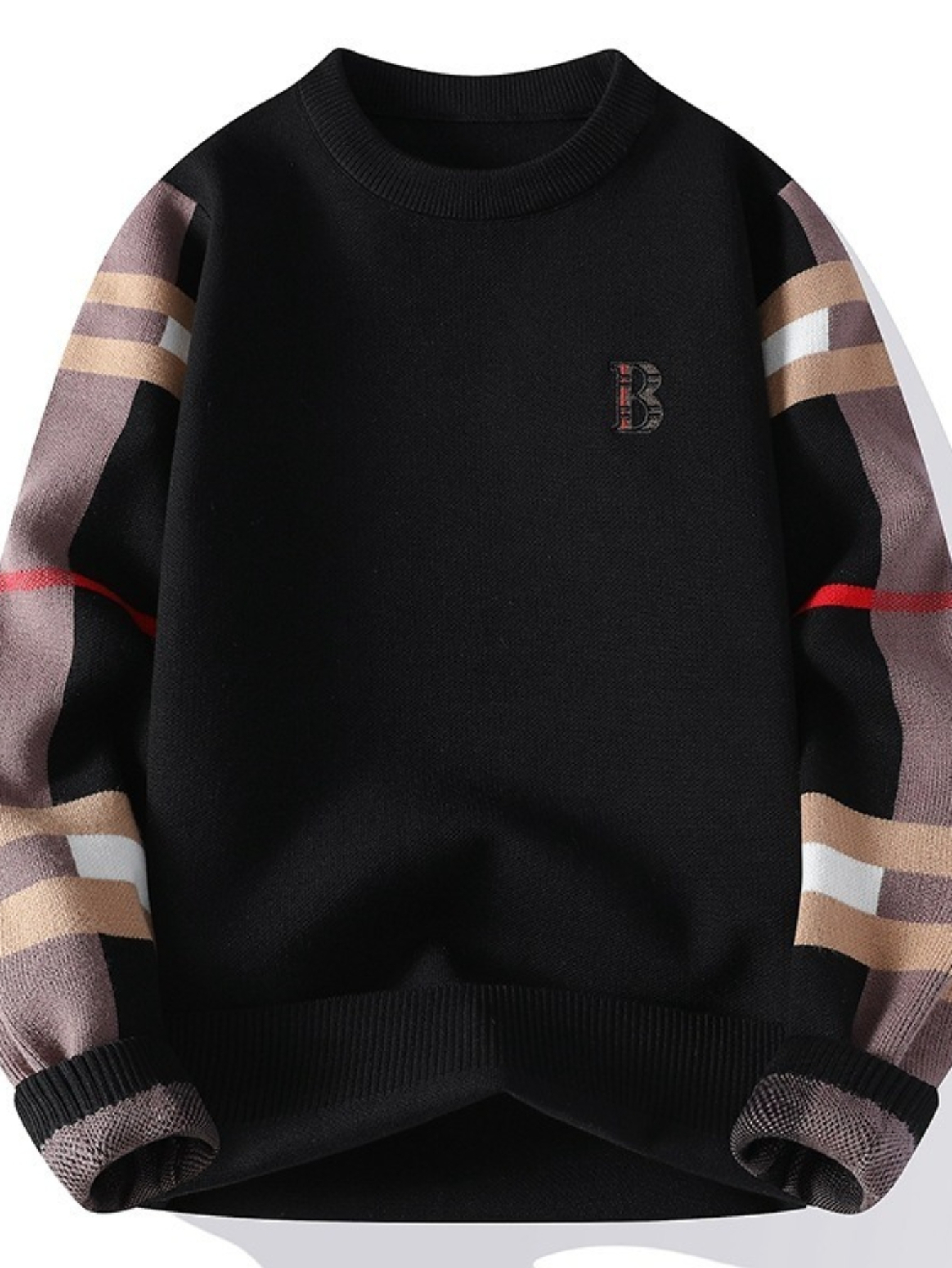 Large Size Men's Plaid & Letter Embellished Sweater - Slim-Fit Thermal Winter Sweaters with Contrast Color Block (Multi-Color Options), Machine Washable Casual Blazer for Cold Weather - Cozy Office to Party Wear for Big & Tall Men, PLUS SIZE