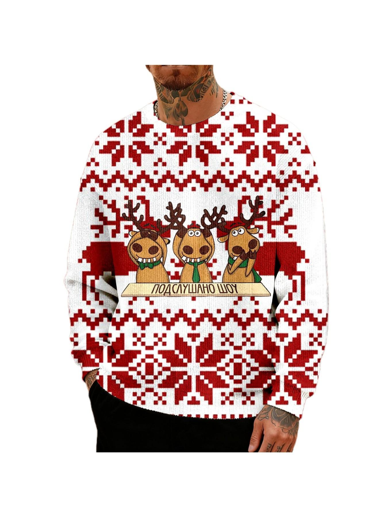 Men's Heavyweight Christmas Sweater - Soft Blend Crewneck Pullover, Solid Color Casual Winter Sweatic Suitable for Holiday Parties & Casual Attire - Machine Washable Thick Sweater, PLUS SIZE