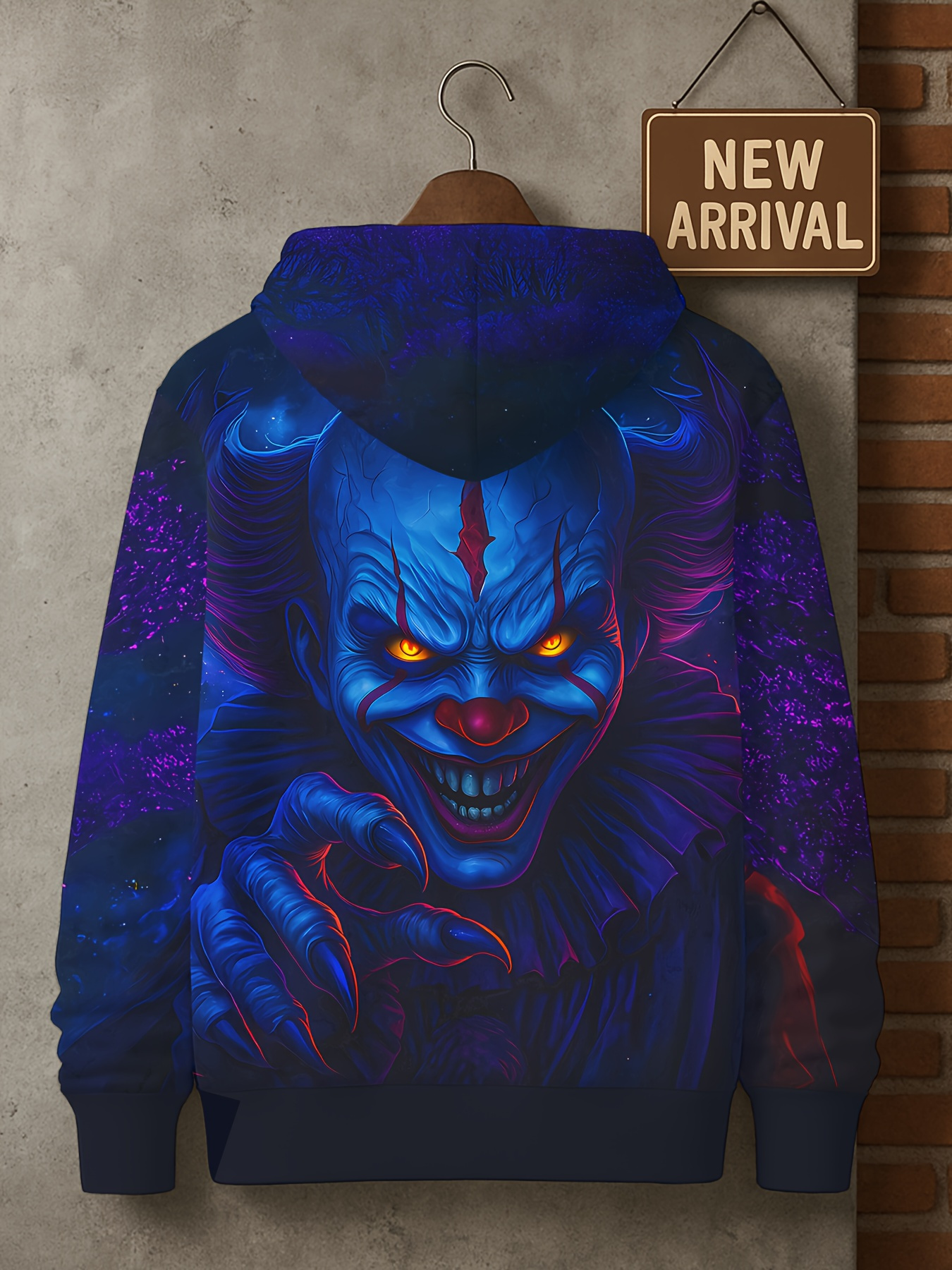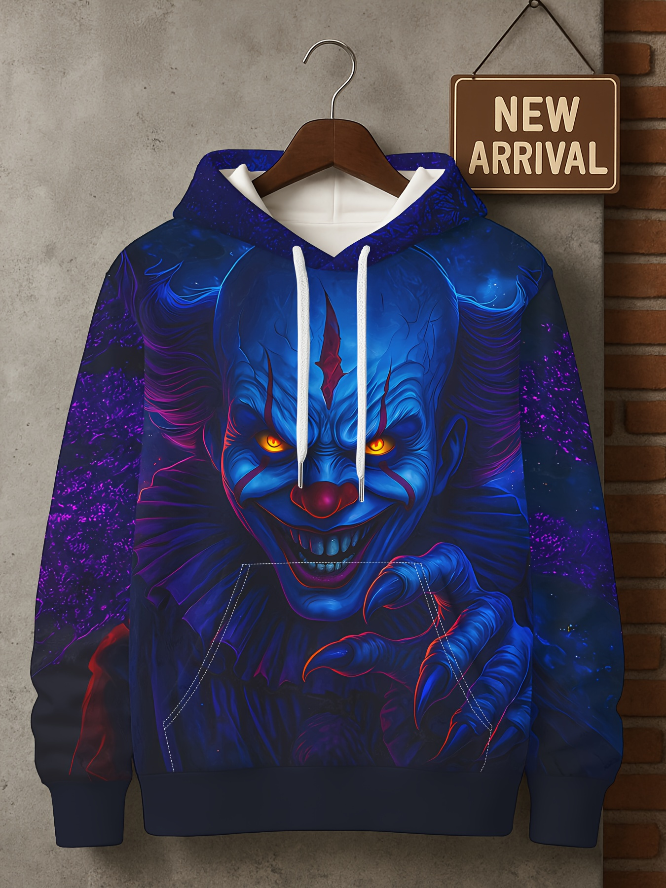 Men's 3D Clown Print Hooded Sweatshirt - Soft Fabric Regular/Loose Fit Long Sleeve Hoodie with Vivid 3D Clown Face Pattern, Clown Costume for Horror Themed Outfits, Streetwear & for halloween Clothing (Machine Washable) for men, PLUS SIZE