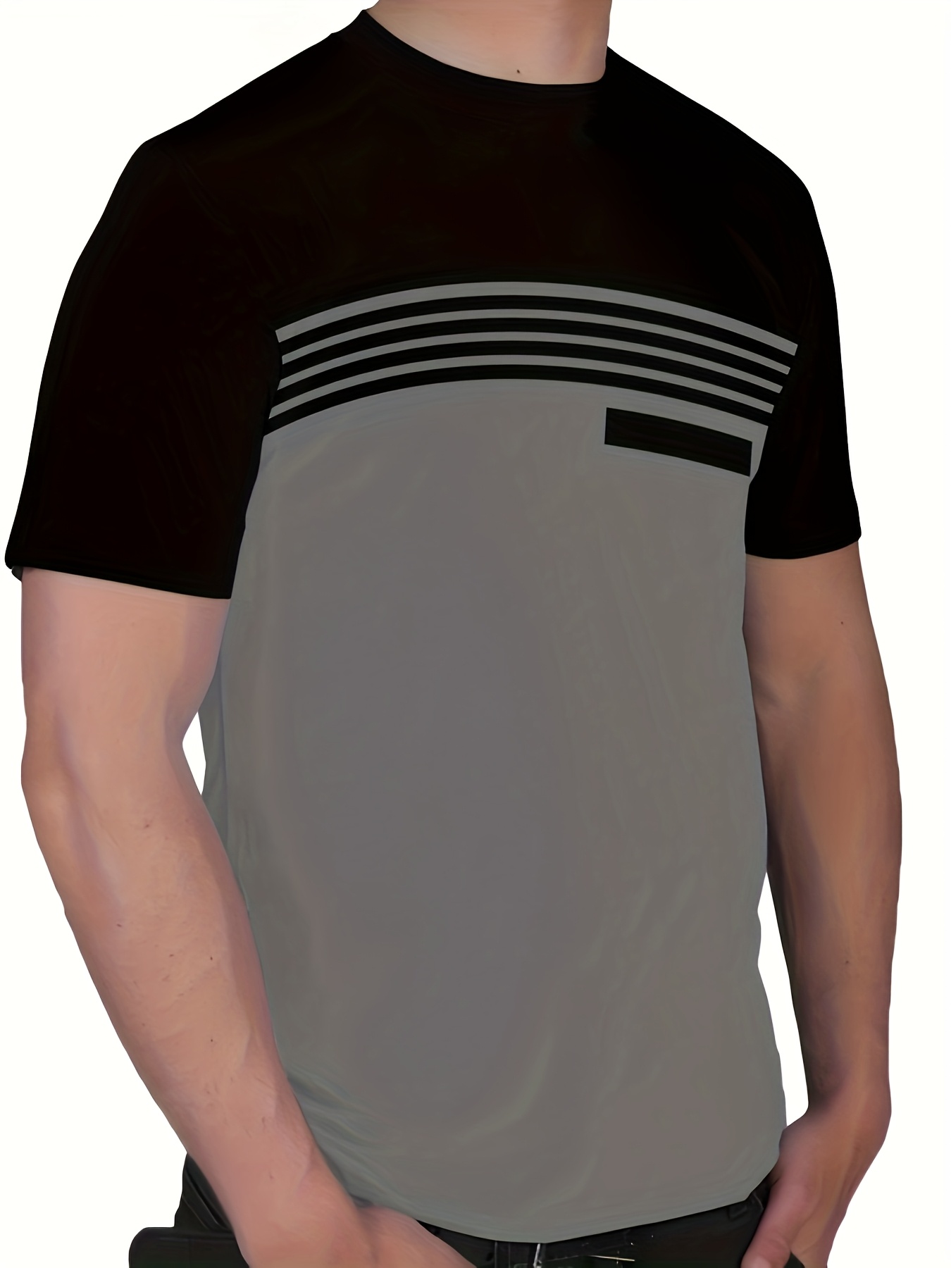 3pcs Men'S Casual Crew Neck Short Sleeve T-Shirts- Light Gray with White Horizontal Stripes, Regular Fit, Slight Stretch Fabric, Stylish Black Watch Accessories, Casual Attire|Striped Tee|Stretchy Fabric, Everyday Outfit, Versatile Clothing, Minimalist Design, Modern Casual, Durable Construction, Breathable Fabric, Basic Tee, Striped Shirt, Plus Size, Men T Shirt High Quality, Men Plus Size Clothing, Big And Tall Men Clothing, Men Big And Tall Clothing, Big And Tall Graphic Tee, Plus