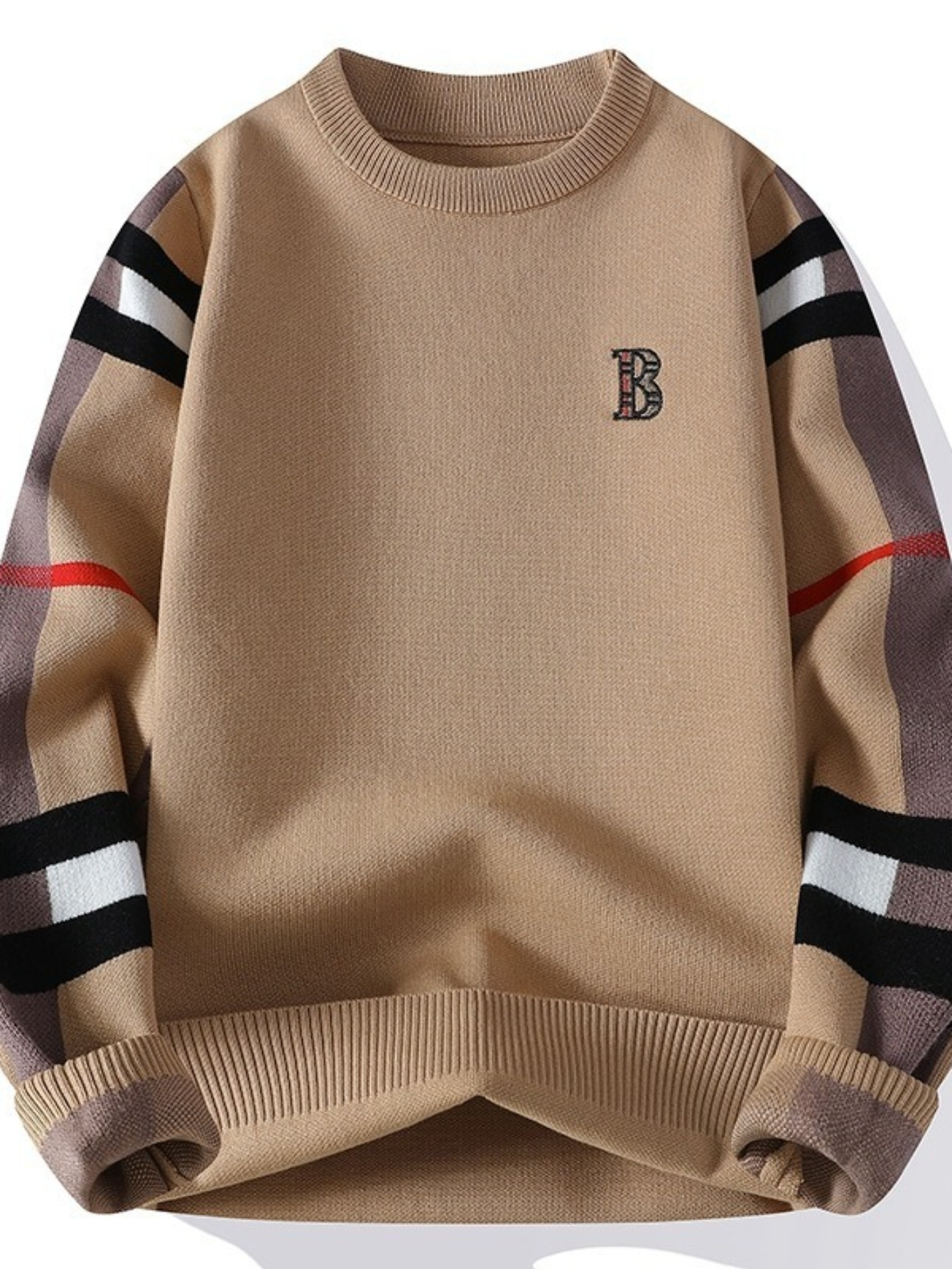 Large Size Men's Plaid & Letter Embellished Sweater - Slim-Fit Thermal Winter Sweaters with Contrast Color Block (Multi-Color Options), Machine Washable Casual Blazer for Cold Weather - Cozy Office to Party Wear for Big & Tall Men, PLUS SIZE