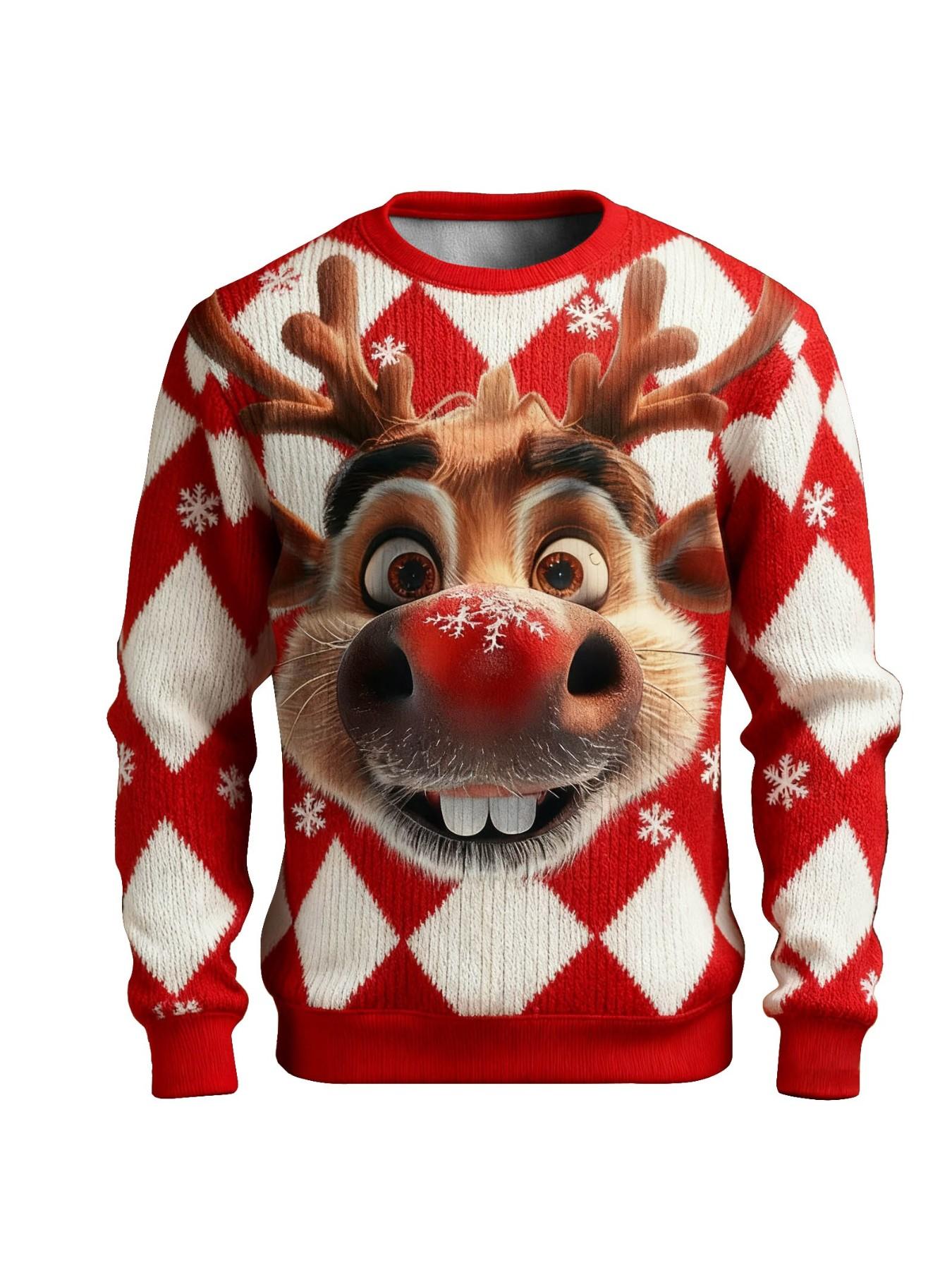 Men'S & Women'S Ugly Christmas Sweater - Reindeer Face & Snowflake Design, Soft Thermal Winter Pullover, Red & Holiday Sweater for Christmas Party Outfits, Plus Size