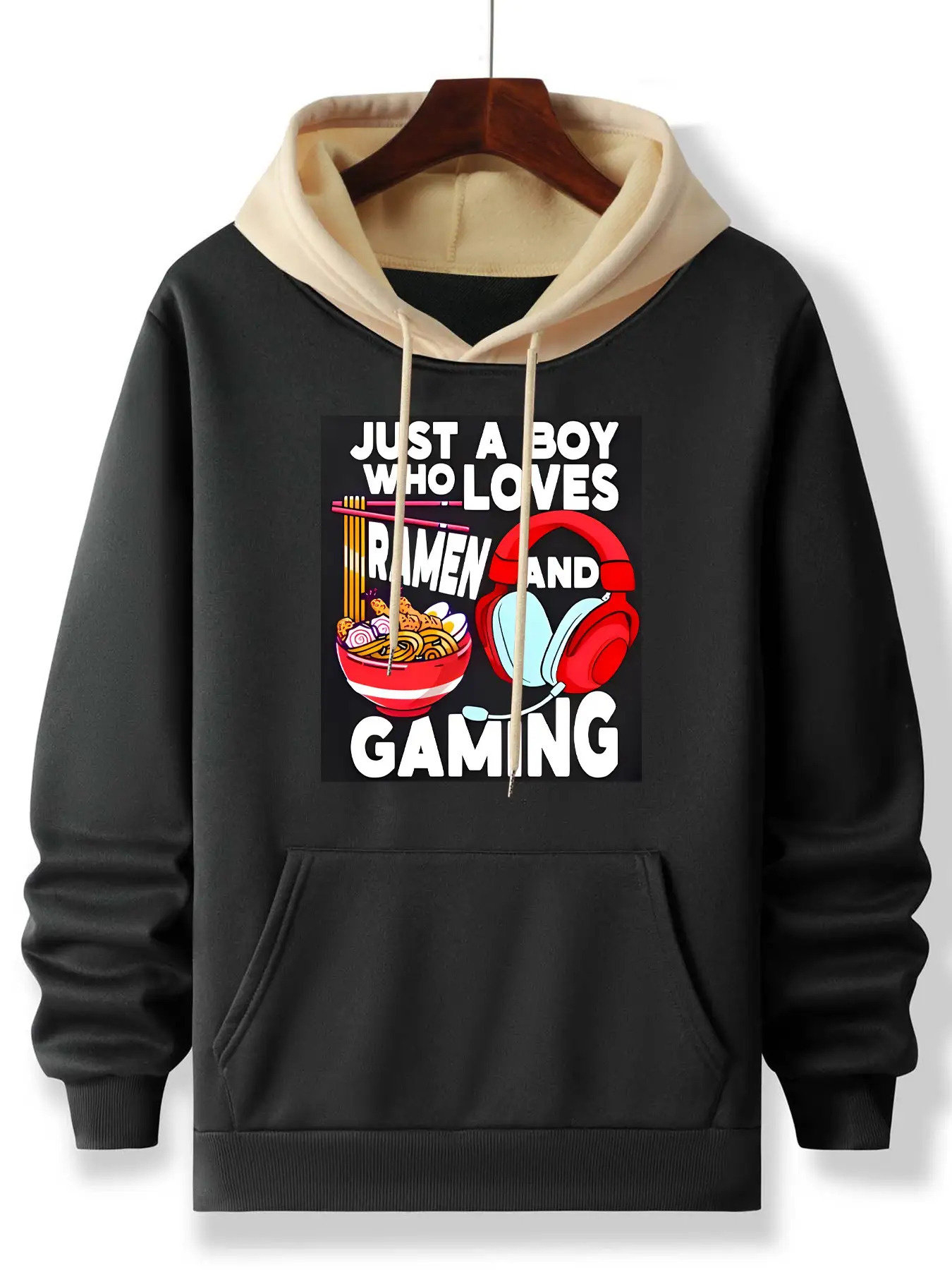 Men's Anime & Ramen Gaming Hoodie - Oversized Casual Pullover Sweatshirt with Text & Manga Characters, -Themed Print (Ramen, Sushi, Miso), Machine Washable Gamer Apparel, PLUS SIZE