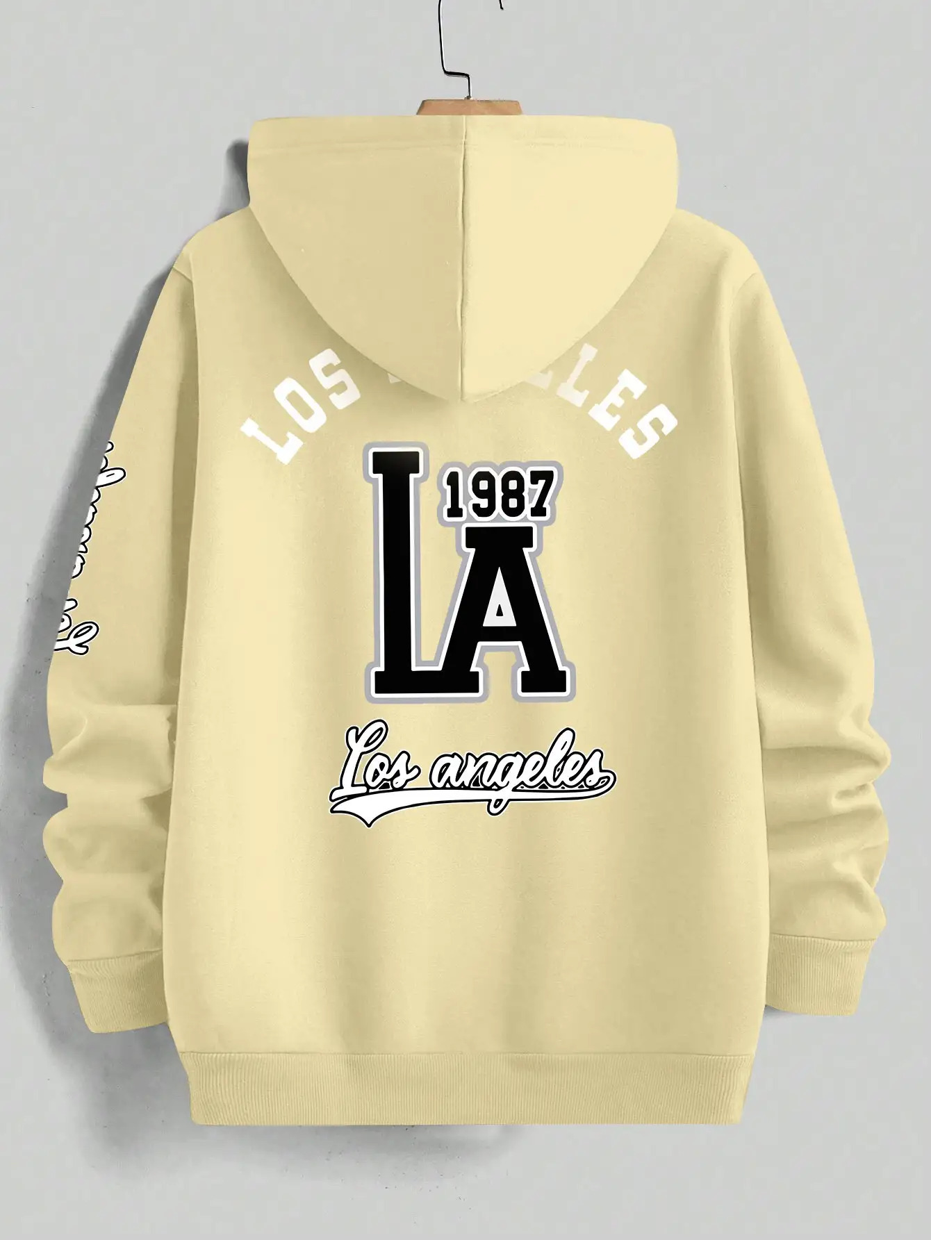 Men's Casual Hooded Sweater with Logo & 1985 Print - Oversized Brown Hoodie, Loose Fit Long Sleeve Pullover, Vintage Lettering, Machine Washable for Spring/Fall Layering (No Transparency), PLUS SIZE