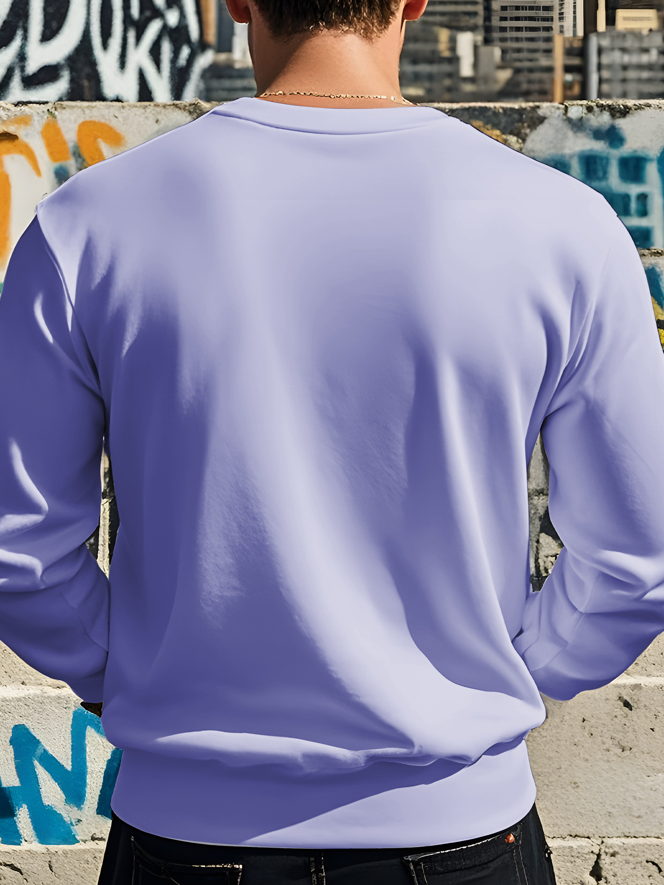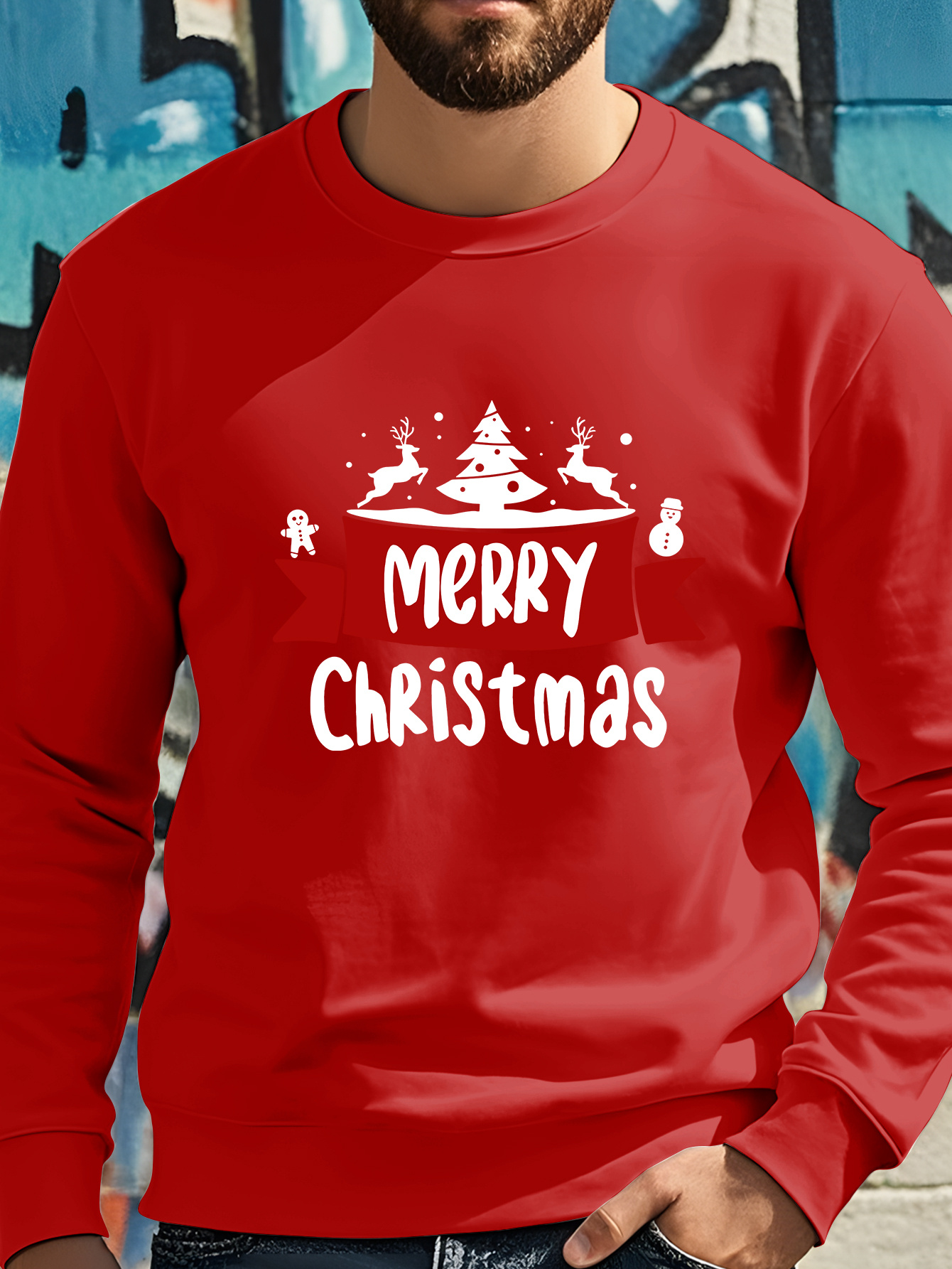 Men's Christmas Tree Print Sweatshirt - Long Sleeve Crew Neck Casual Pullover with Merry Christmas Lettering & Snowflake Design, Purple Red/Green Holiday Sweater for Spring/Autumn, Festive Winter Party Outfit, PLUS SIZE