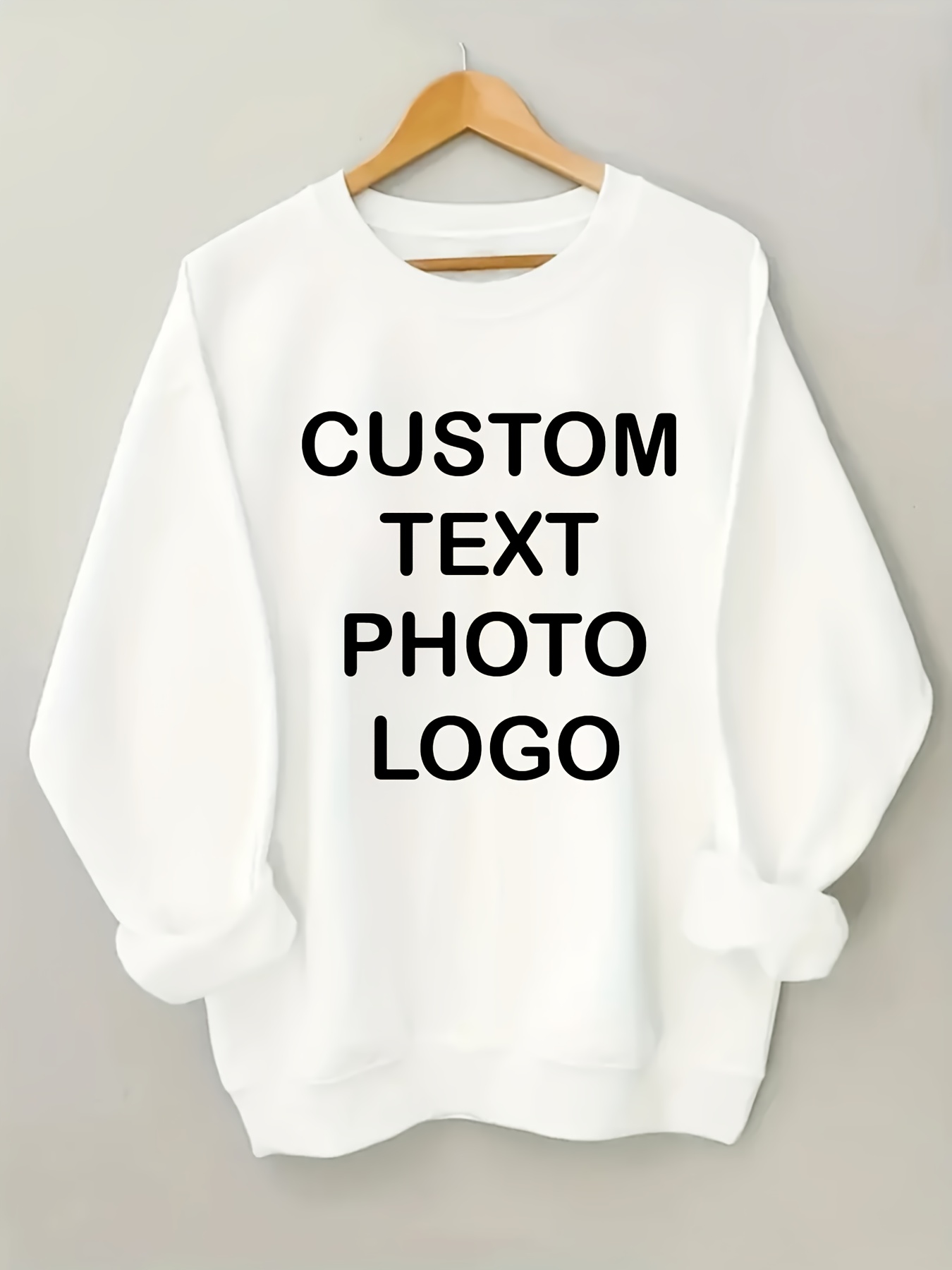 Men'S Custom Photo/Text/Logo Hoodie - Personalized All-Season Sweatshirt with Your Own Design, Loose Fit Round Neck, Durable Affordable Printed Sweater for Events, Promotional Gifts & Daily Wear - Custom Clothing Service, Plus Size Sweaters for Men