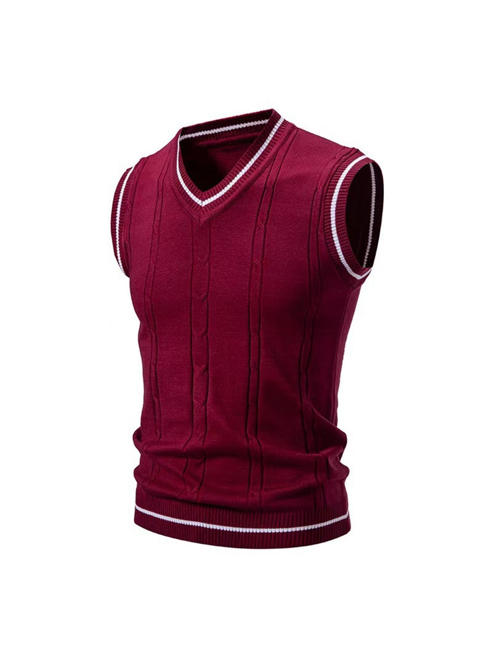 Men'S Heavyweight Sweater - Solid Burgundy Round Neck Pullover with Piping Trim, Regular Fit Winter Warmth, Casual & Formal Wear, Durable Easy-Care Sweater for Fall and Winter Layering (Coat-Compatible Hanging Hooks Included) - Versatile Everyday &