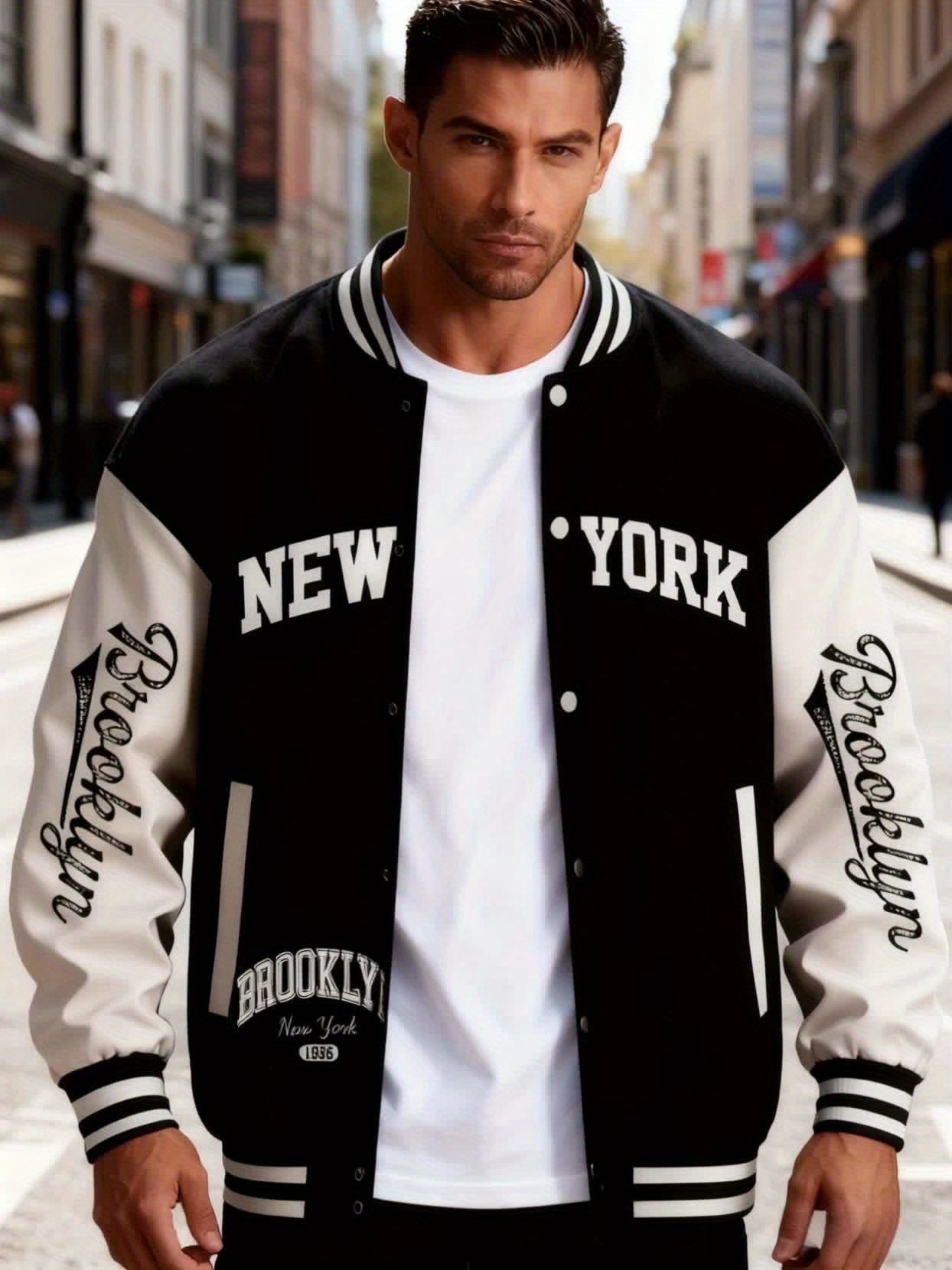 Men's Large Plus Size New York Logo Baseball Uniform Jacket - Winter Outdoor Casual Snap Button Closure Coat with Letter 'NY' Emblem, Machine Washable Polyester, Christmas Gift for Fans, PLUS SIZE