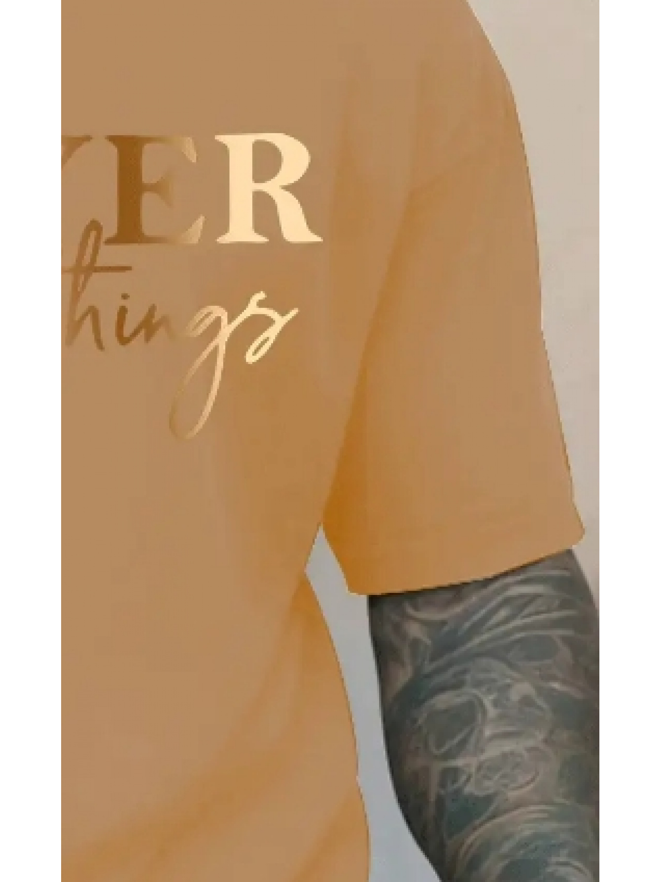 Men's Oversized Big & Tall Light Grey T-Shirt with Inspirational "Prayer Changes Things" Golden Print - Casual Round Neck Short Sleeve Christian Faith Apparel, Comfortable Casual Attire, Machine Washable, PLUS SIZE