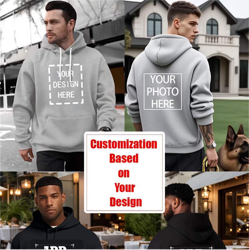 Customizable Men'S Hoodie - Personalized Front & Back Printing with Your Photo/Text/Logo - Soft Pullover Sweatshirt, Loose Fit Hooded Sweatshirt with Pockets, Durable Fabric for Corporate Branding, Birthday Gifts & Streetwear - Custom Graphic Design