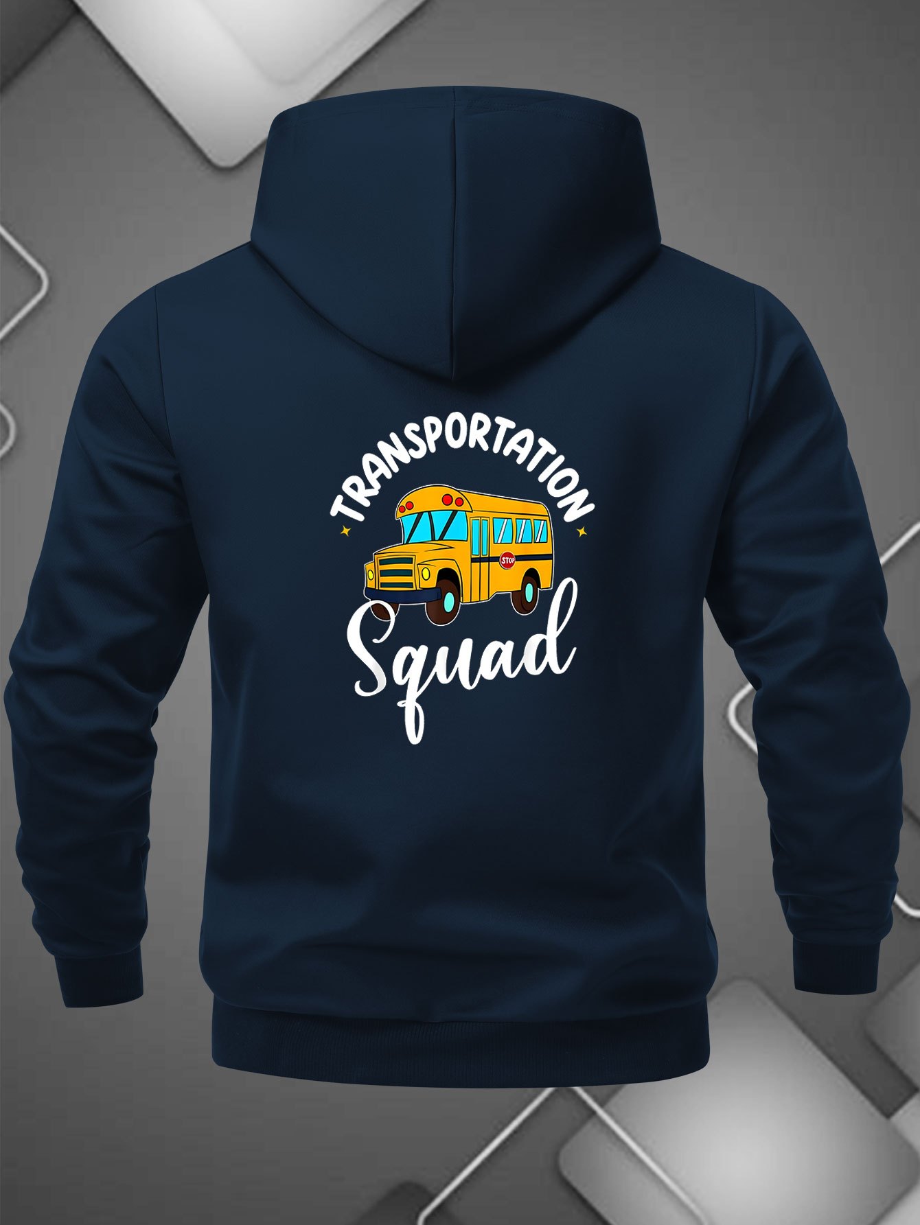 Men'S Casual Full-Zip Hooded Jacket with Transportation Squad Graphic Print, School Bus & Taxi Design, Softshell Zipper Closure, Drawstring Hood & Pockets - Urban Streetwear Outerwear for Everyday (No Lining, Regular Fit), Plus Size