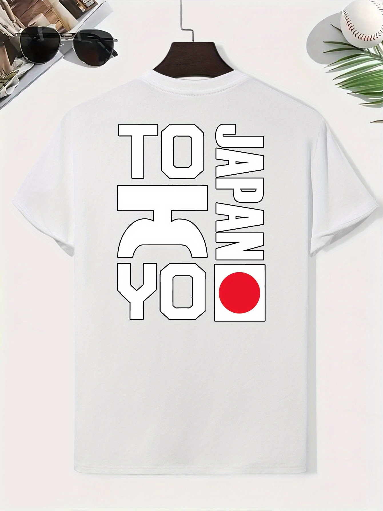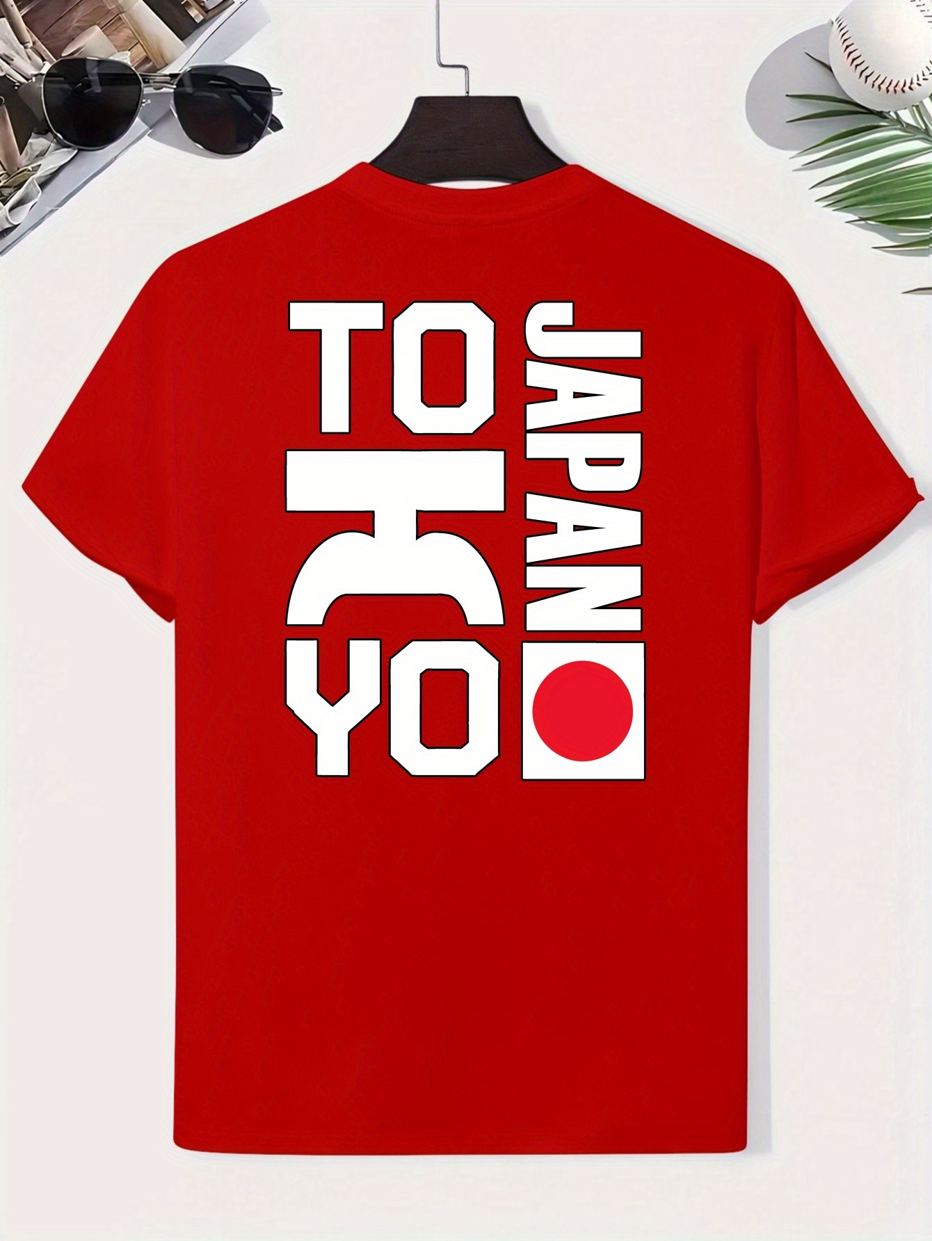 0302 XH JAPAN TOKYO Men's Casual Short Sleeve T-Shirt - Oversized Relaxed Fit, Bold TOKYO Graphic Print with Japanese Flag Design, Lightweight Summer Round Neck Top for Casual Attire, Comfortable Fabric, PLUS SIZE